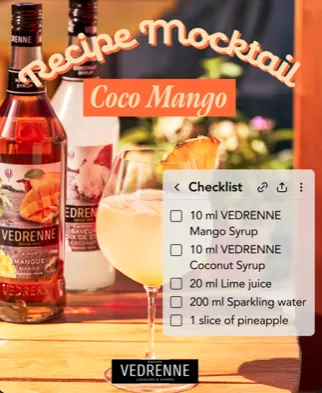 Appuyez-vous sur une ou plusieurs caractéristiques du produit pour évoquer l’univers de la marque ou ses origines. Mettez en scène la bouteille sur une belle photo, valorisez les arômes, racontez la culture des fruits ou les gestes d’experts qui créent ce goût unique et incomparable.
