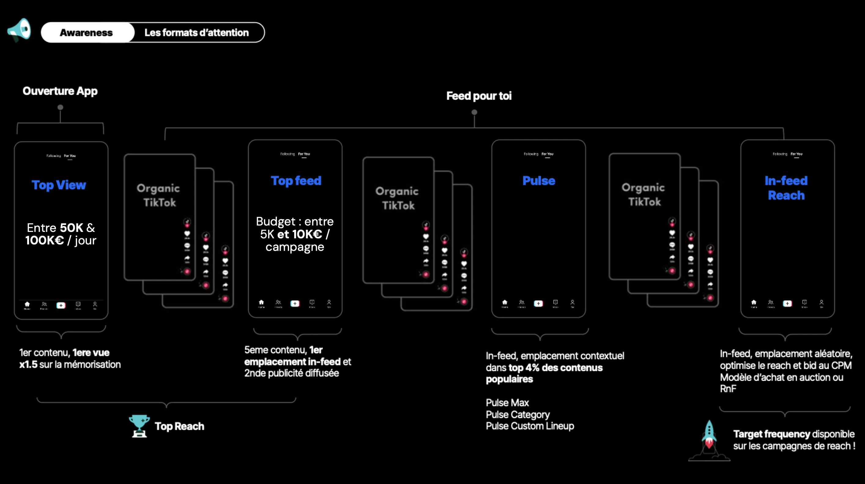 TikTok développe des formats centrés sur l’attention, conçus pour renforcer la notoriété et maximiser la mémorisation.
